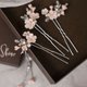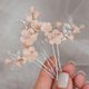Pink flower hair pin, Sakura bridal head piece, Pearl wedding earring jewelry