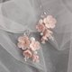 Pink flower hair pin, Sakura bridal head piece, Pearl wedding earring jewelry, Japanese flower fall accessory