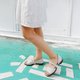 画儿#8065|| 小牛皮几何切口附带两穿露趾鞋 杏仁牛奶||