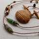 橄榄木立体雕刻的扇贝搭配各种珠珠,缤纷活泼的项链。