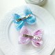 此款蝴蝶结是双层的,下面是韩国的渐层条纹雪纺带做成的,渐层色泽请看最后一张底部的照片。