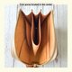 内层的意大利皮革,表面带有轻微刮痕,局部可见细致的白色绒毛感,触感滑顺而略带雾面。此为鞣质皮革,能够随着时间越发显得醇厚,使用后绒毛感会逐渐减轻,颜色略微加深,质感也会转变为带有光泽。