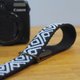 相机手腕带采用了精致图案的编织面料制作。它巧妙地缝制在棉质带子上,提供柔软舒适的感觉,确保不刺激皮肤。两端用真皮巧妙密封。