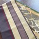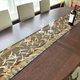 这款桌旗采用和服腰带制成,展现了日本的传统美感。一面饰有金线精心绘制的竹叶图案,以及象征“长寿”和“富贵”的玳瑁纹,棕的底色则营造出一种低调的优雅气质。另一面则以金黄色、栗色和深绿色为主色调,呈现出别致的条纹图案,与现代空间相得益彰。