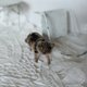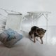 这个微型玩具是由天然羊毛制成的。玩具内部有一个铁丝框架,所以尾巴和爪子的位置可以稍微改变。