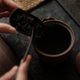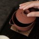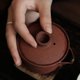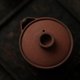 - 手艺人打破常规,以紫砂泥(紫泥)做胎,选用紫砂泥 (朱泥)配制成化妆土装饰于胎体表面. 器物本身并不拘泥于材质本身的限制,才是最好的创作. 容量130ml 口径8cm. 高7.6cm 壶嘴到壶身距离10.5cm