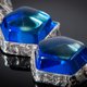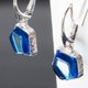 这对优雅的蓝琥珀耳环由手工精心打造,镶嵌于925纯银底座上。