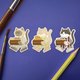 以猫咪与面包为主题设计的插画贴纸,风格温暖疗愈。 雾面质感表面不易反光,触感细腻,兼具美观与实用性。 适用于笔电、手帐、手机壳、行李箱等,多种场合皆可轻松装饰。