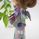 - I made a kimono with cute modern bird pattern fabric With ribbon and back