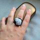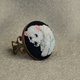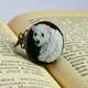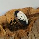 绣有北极熊的手工戒指。 图案是我设计的,也是我绣的。 我在每幅刺绣图片中使用最大数量的颜色,使其更加逼真和丰富多彩。 这只熊用棉绣线绣在黑色亚麻织物上。 细节: - 圆形为 25x25 毫米(1x1 英寸); - 材质:黄铜环底座、棉、麻; - 戒指是可调节的。