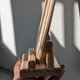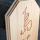 这款实木立牌以整块木材加工制作,线条俐落、比例稳定,搭配厚实底座设计,能稳固直立于桌面或柜台,不易倾倒。立牌表面保留木材天然纹理,经细致打磨,手感温润自然。