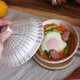 可在微波炉中加热的煎蛋。 只需将一个生鸡蛋打入罐中,盖上盖子,用微波炉(500瓦)加热1分钟。