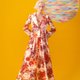 领口、袖口和裙摆处有颜色鲜艳的图案,