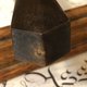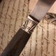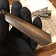 刀上面有品牌落款,刀柄使用为动物角,上面可以清楚,看到角纤维,不确定是什么动物的角,不过不外是牛角或羊角。