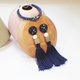 自家制组合: 手作流苏手钩耳环 手织手链 印度矿石闪面珠日本玻璃珠 客制化 深宝蓝色 香港原创