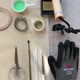 彩色玻璃、锡、铜箔、电烙铁、铜线、染黑(铜)剂、手套、围裙、工具