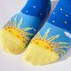- needo socks × 几米 绘本〈忘记亲一下〉授权联名合作款式。 / 太阳月亮 3:4 / 纯棉 长袜 亲子袜 ❍ 脚尖符合脚形设计,分左右脚穿的袜子 ❍ 单支脚底 That's right! 字样即为右脚