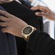 表盘:多功能计时码表显示表盘,搭配近年蔚为风潮的黑金面盘。