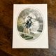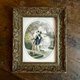 这是一幅极具历史与艺术价值的珍品——1935年为庆祝罗浮宫百货创立80周年所发行的纪念版画《Le Secret des Fleurs》(花的秘密)。画面描绘一对身着19世纪典雅服饰的少女,在花园中静静漫步,仿佛低语着只有花朵才知的秘密。浪漫主义风格的细腻笔触与优雅构图,完美捕捉了那个时代巴黎社交生活的诗意与精致氛围。