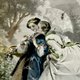 - 这是一幅极具历史与艺术价值的珍品——1935年为庆祝罗浮宫百货创立80周年所发行的纪念版画《Le Secret des Fleurs》(花的秘密)。画面描绘一对身着19世纪典雅服饰的少女,在花园中静静漫步,仿佛低语着只有花朵才知的秘密。