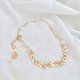 以金色叶片为主设计,细致的叶片纹理呈现自然优雅的质感,搭配珍珠点缀,增添了柔美与高贵的气息。链尾的小叶片与珍珠吊坠设计让细节更具层次感,散发出精致且迷人的魅力。 无论是正式场合还是日常穿搭,这条手链都能轻松衬托出你的气质,成为腕间的亮点。