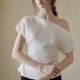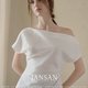 SIZE L: 衣长56.5cm 左肩袖长13.2cm 右肩袖长27.5cm 胸围90cm 腰围70.5cm
