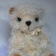 Elvian THIS TEDDY ALREADY FOUND A HOME. I AM HAPPY TO SEW ONE JUST LIKE THIS FOR YOU - IT TAKES ME FOUR WEEKS TO MANUFACTURE:) This big size white bear is so cute with its long hair and bright blue eyes. He will make a beautiful companion... Materials: German Mohair 41 mm hair length Five disc joints - head and legs are moveable Glass eyes Mohair polyamide filling Satin ribbon flower Growth: height: 34 cm/13,5inch width: 20 cm/8inch Please note this toy is not suitable for children - it is made in traditional teddy bear technique with disc joints. It is a collectible item.