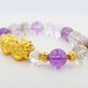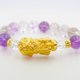 999.9黄金重: 总重1.12钱 (黄金貔貅重 0.78钱,貔貅尺寸约:27x13x11mm) (黄金金珠4颗共重 0.34钱,金珠尺寸约:6x5mm) 手围:17.5(弹性线) 材质:999.9黄金,天然紫水晶10mm,天然白水晶7mm
