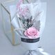 永生不凋樱粉玫瑰搭配粉色系配叶材与银叶菊有祝福与爱恋之意~