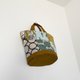 这是使用 minä perhonen 的室内装饰布料手工制作的作品。 并非 minä perhonen 的官方产品。 这是一款使用 minä perhonen 布料制作的桶状包。 内含铺棉,因此成品蓬松而结实。 袋口装有磁扣。 内侧有一个口袋。 表布:亚麻 底部、内袋:11号帆布 尺寸:宽度(袋口):约 30 厘米 高度:约 24.5 厘米 底部:约 19.5 厘米 提把:宽约 3 厘米,长约 31 厘米