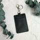 单面印制,背面荔枝纹黑色皮革,可放两张卡片,