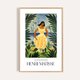 作品采用对比强烈的色彩块构图与极简轮廓描绘人物与自然的共生关系。阳光洒落下的黄花与裙摆互相呼应,形成柔和却醒目的视觉中心,传达一种“自然即力量”的宁静语言。适合用于任何想表现自我风格与自然感的空间角落。