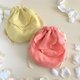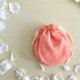 Using powdery double cloth, we created a drawstring pouch with petals fluttering around the mouth.