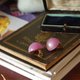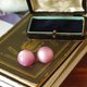 Vintage 古董透光光晕紫色半圆球夹式耳环 C837