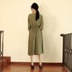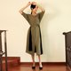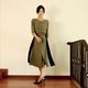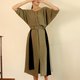 墨绿 双层乔其布料 下垂 质感连衣裙 黑色阔带