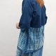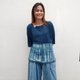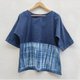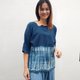 夏季缺角船领及肘长袖靛蓝色扎染上衣。可爱的合身设计,凉爽的靛蓝染色图案。