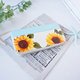 To sunflower of yellow on white background, light blue leather which imaged the sky is a cute wallet.