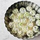 每颗珠子都是用大戟钻石霜(一种自制的干燥花)的白色花瓣手工制作而成,并用树脂密封,因此花瓣的插入方式是独一无二的。