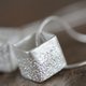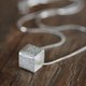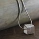 This simple cube pendant was made of a 1mm thick silver strip, that was passed into a rolling mill together with sand paper that left a beautifully embossed texture on the surface of silver. The cube was made of 95% silver, which is usually used by the Thai Karen silversmiths. Higher silver content contributes to a distinct look and feel of the product, unique to Karen hill tribe silver - it has a different feel, shine and bright satin color in comparison with 92.5 sterling silver. A simple and sleek 1mm silver round-profile snake chain contrast nicely with the handmade feel of the cube pendant. The necklace closes with a simple silver hook.