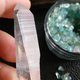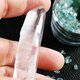 --店主手边的白水晶"单晶柱"现货种类蛮多的,如:激光柱、白条子、打磨过的白水晶柱摆件、还有就是 "雷姆利亚(Lemurian)水晶"