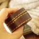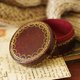 古董少见真皮描金酒红色圆形戒指盒珠宝盒 W708