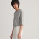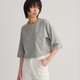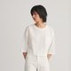 以落肩的版型搭配倒梯形六分袖的袖型轮廓,