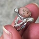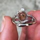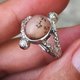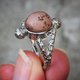 这个小指环的主石位置用了天然戈壁玛瑙小原石-天然形成的粉红色带有花草的图案,完全没有经过人工的设计和打磨,是大自然的馈赠,配上了一个果子感觉的设计,特别而充满质感的一个。