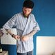 Description: F3171[甚平外套](日本制里标)白色深蓝色100%棉质甚平外套(Made in Japan)
