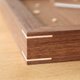 挂钟四个角落都有俐落的榫接设计,像这样的卡榫能为单调的木制品增添设计感。这种技法称为“榫接”。将要接合的部分,刻出能够彼此契合的沟槽,让两个零件合而为一成为L型部件。让枫木卡榫没有缝隙的完全嵌入,需要相当高超的技巧。而使用榫接制作而成的作品会比使用黏着剂来的耐用许多。