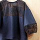 **【 落肩剪接澎袖上衣/ 蓝咖几何 】**