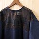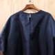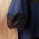 选用些微挺度的咖蓝几何蕾丝拼接深蓝棉麻