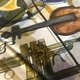 这款手帕印有以水彩描绘的原创插画设计,采用纯棉材质。 印制和缝制皆在日本国内完成。 将乐器图案融入设计中,并以古典色调呈现。
