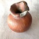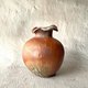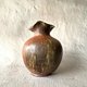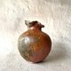 经过高温窑烧,又发出陶土特别色彩,此花器在柴窑内摆放位置,正好落下窑汗.垂落在瓶口花瓣上, 就像是窑神无意间抹下一笔, 给了这个花器与众不同的独特印记.