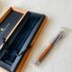 精选巴西苏木,质材坚硬耐用细致,制作工法相对复杂困难,每一支笔都是独特的天然木纹色泽呈现.笔夹,笔夹和笔尖则是采用高级白金制成, 并用木盒包装,还有麋皮笔袋,增添整体质感。